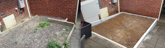 This area was used for a kids play area and became redundant. Decking will be installed and then used as an entertainment area.